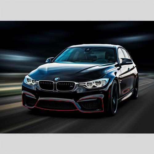 black metalic bmw 318 3 series driving fast, black grill and black grill outline matte, minimalistic art, the car needs to be put on the planet moon