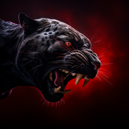 stamp_design squared_vector_solid_color_simplistic black bacground in the midle black panther clawing, roaring, vibrant red background, expressionist aesthetic, minimal, modern, linocut print