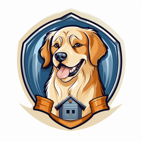 vector, white background, logo, a dog in a dog house, shield badge logo, with a paw print