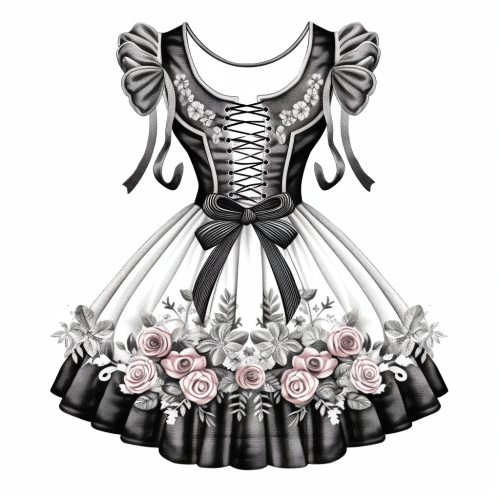 hand drawn, dirndl lace with flowers, isolated on a white background
