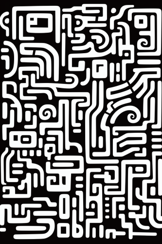 A black and yellow abstract pattern with triangles and squares, in the style of irregular curvilinear forms, puzzle-like pieces, bold, cartoonish lines, bold colors, strong lines, zigzags, matte background --ar 1:1 --v 5.2