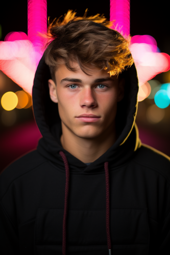 Black teenager in Tokyo Japan wearing a plain hoodie with cherry blossom trees