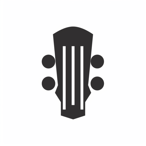 A simple, minimalistic guitar headstock icon, black and white, flat design, clean lines, few details, modern and sleek outline, tuning pegs visible but understated, suitable for a logo or graphic representation --v 5.0 --ar 1:1