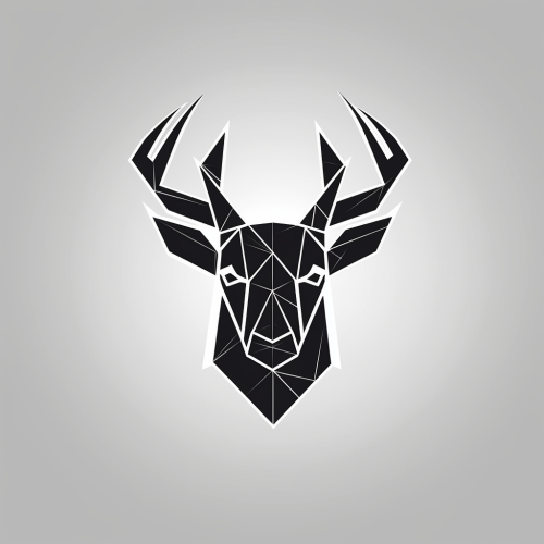 abstract deer logo, minimalist, smooth lines, geometric shapes, symmetrical design, modern, clean, high contrast, vector style, centered composition, monochrome colors, suitable for branding --v 5.0