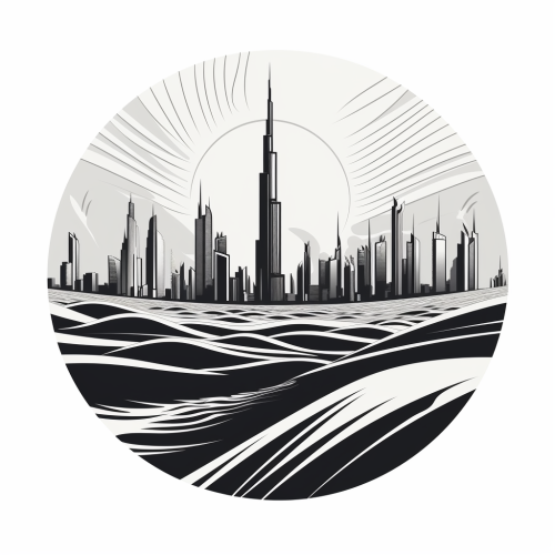 burj khalifa, black and white, dunes, logo, design, graphic, circle,