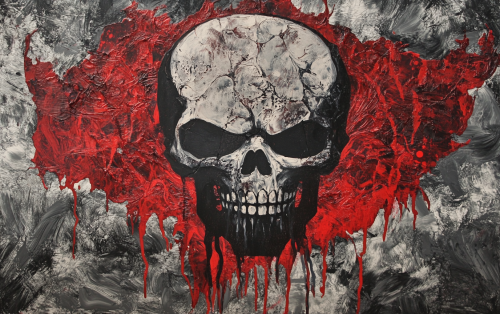 den mcguittin, sultan punish, artwork, in the style of mixed media marvel, skull motifs, fluid acrylics, aggressive quilting, jason pearson, black and gray, intense colors --ar 8:5