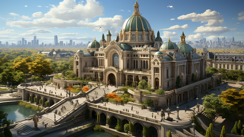 bird eye view of a grand terminal station in the style of grand palais, beaux arts style, --ar 16:9 --s 750 -