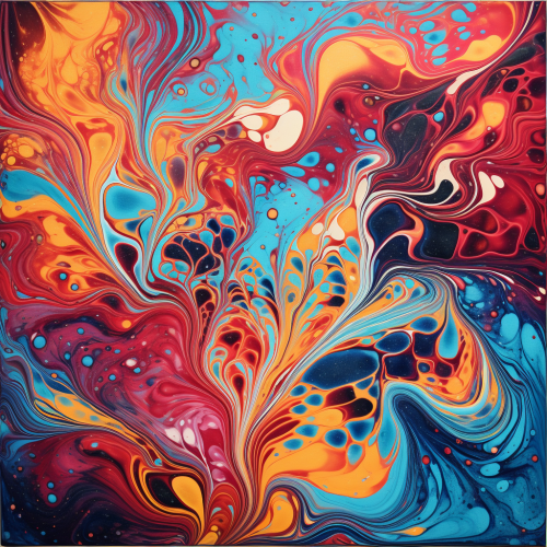 an abstract cosmic scene with swirling galaxies, using a vibrant palette of orange, green and yellow to suggest the vast beauty of the universe. Embrace a dreamy and fluid aesthetic for the artwork