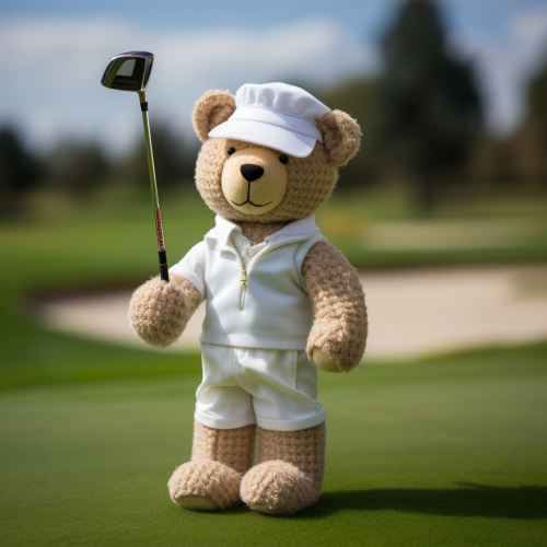 Adult Golf Player playing swing in front of camera, Cartoon Portrait, Funny Golf Portrait, Cartoon, Golf Cartoon, background Golf Court --style raw