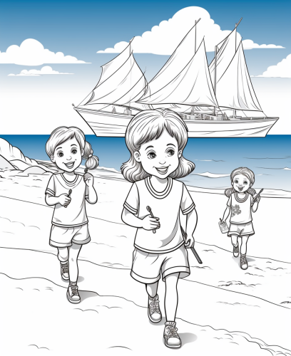 kids coloring page, black and white, no shading, bold clean lines, kids playing baseball