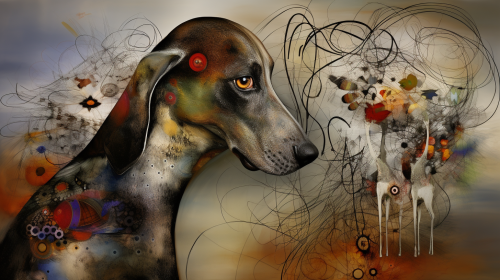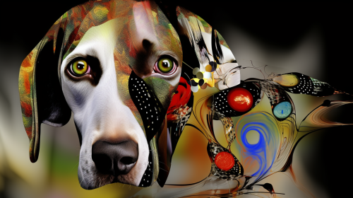german short-haired pointer, picasso styled imagery, a fusion of primitive and modern elements, spontaneous brushwork, a riot of color, light colored background with underlying social commentary and very detailed, 32K UHD --style 5HGA2gERt --ar 16:9 --v 5.2 --stylize 350