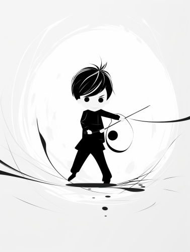 Clean line art, white background, black and white, simple vector style, little boy with a slingshot, --v 5.2 --ar 3:4