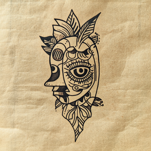 22h tattoo stencil tiny tattoo ilustration, A simple line drawing of an anthropomorphic traditional tattoo, symbolic, symbolism, abstract American traditional tattoo, old school, Western traditional, classic tattoo, baksinski style, vintage tattoo, traditional tattoo, vintage style, simplified, simple, bold black outlines, limited color palette, lots of shading, single tattoo, single design, tattoo flash, flash art, inked, light background xyzABC611