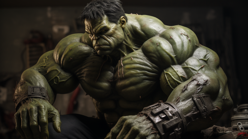 The Hulk, from the side, Muscle, strong, bodybuild, Hyper realistic photo, high definition picture, professional photography, cinema theme --ar 16:9 --style raw --s 250