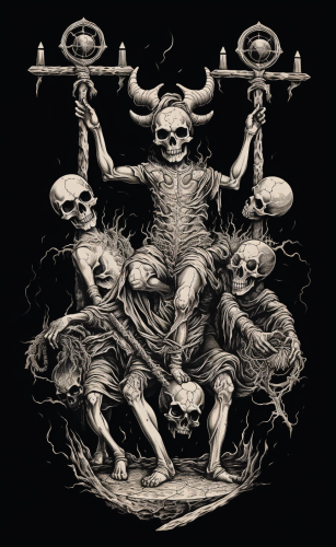 a gothic illustration of the devil arcana from the tarot, black and white, --ar 5:10