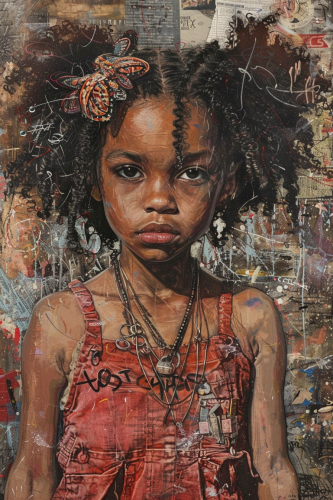 Tim Okamura's painting depicting beautiful afro American child --ar 2:3 --v 6.0