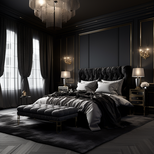 The master bedroom is a serene escape from the vibrant city below, occupying the entire top floor of the mansion. It features wraparound windows with uninterrupted views of the skyline, all equipped with automated blackout shades that can be controlled via voice command. The room centers around a custom-designed king-size bed with an upholstered headboard that extends to the ceiling, crafted from plush velvet with brass accents. At the foot of the bed, a retractable TV rises from the floor, offering 8K entertainment at the press of a button, while a separate seating area provides a private space to enjoy morning coffee with views of the sunrise. The walls are clad in silk wallpaper, and the floor is covered in the softest, hand-tufted wool carpet. A private terrace extends from the bedroom, with a glass balustrade and an outdoor fireplace, perfect for unwinding while enjoying the lights of the city at night. The master suite also includes a massive walk-in closet with automated lighting, custom shelving, and a jewelry safe. The closet leads directly into the spa-like master bathroom