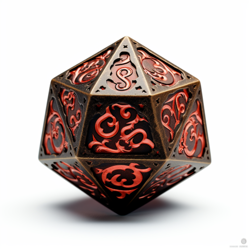 D20 sided dice with a long grey beard, 2D print, logo, T-shirt print