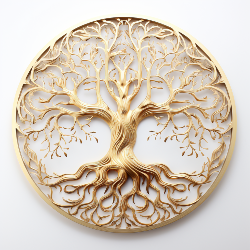 Design an abstract logo for caregivers brand that embodies contemporary elegance. Use fluid, abstract shapes in a monochrome palette, hinting at sophistication life of tree and human. The design should be minimal yet impactful
