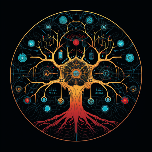 A highly detailed,high contrast - high-resolution avatar style illustration and showcasing the sacred GRAND tree of life WITH GLOWING PARTICLE FEATURES REPRESENTING HEALING ENERGY - cinematic wide angle - with intricate details and vibrant colors symbolizing the tree of life - electricity vibrating around the GRAND GIANT tree - The scene includes elements of avatar style nature, HEAVENLY FEEL, EPIC , positivity, health, love to represent high vibration. The composition is dynamic and engaging, showcasing the blend of the sacred tree of life standing in front of swirling patterns and glowing energy bodies. The figure is surrounded by trees and flowers,The artwork features psychedelic colors against a cosmic background. The style is reminiscent of the intricate details and vibrant hues found in the artwork of master digital spiritual art - trippy psychidelic style --ar 16:9