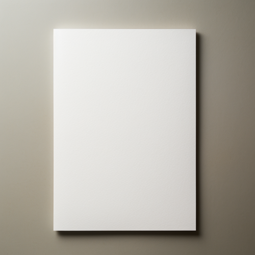A single blank sheet of paper, clean and smooth, lying flat on a plain, neutral background. The paper is centered, with soft lighting that casts a gentle shadow underneath, adding depth. High resolution and minimalistic, without any other objects or textures in the frame. Simple, clean aesthetic.