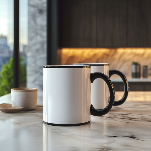 Mug mockup blank mug white mug colored rim mockups minimalist background , coffee mug mock up blank mug mockups product mock up mug mockup, modern kitchen, dark cabinets, marble counters and beautiful cabinets. photos 11oz. High resolution.
