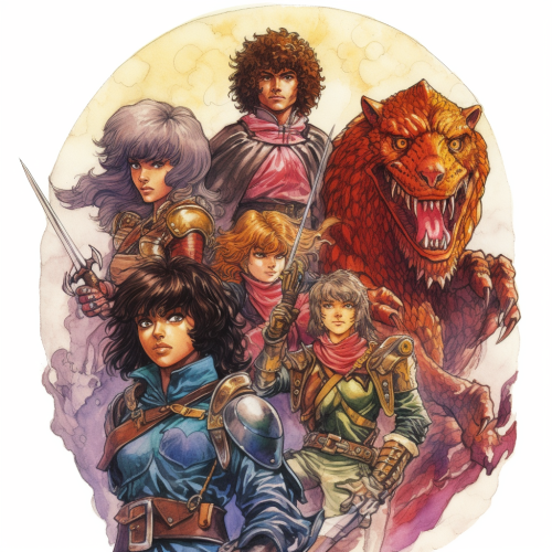 1980s manga art style illustration dungeons and dragons, character design, fantasy game --v 5.1