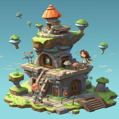 Easter Island Civilization, initial game character, character layout, architect with plans, palace, cartoon, toyism, game art, CG illustration, digital art, digital art, front view --ar 16:9