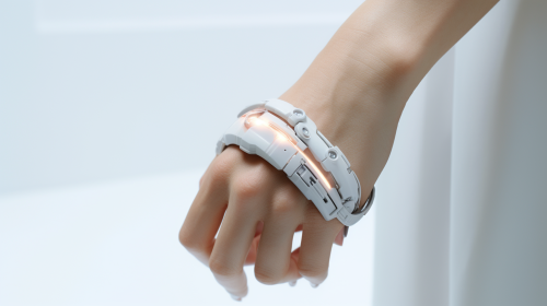 aphotoshot of a hand wearing futuristic ring on it's finger. in a white room, product shot, taken with Canon EOS 5D Mark IV DSLR camera, using an EF 50mm f/ 1. 8 STM lens. The resolution should be 30. 4 megapixels, with an ISO sensitivity of 32, 000, and a shutter speed of 1/ 125 second. Photorealistic and ultra detailed. The lighting should be warm and bright, The colors should be vibrant and rich --v 5.2 --ar 16:9