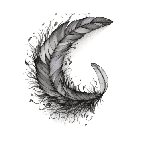 a black and white line drawing created with bird feathers shaoed in the letter W --v 5.1 --s 1000