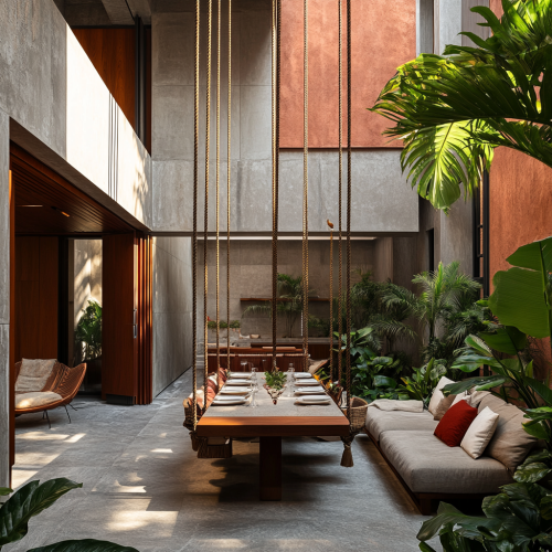 Show a kitchen with Tomato Tango red kitchen cabinets, which have a rich tomato red color that adds a rustic yet vibrant touch. Pair these cabinets with a butcher block countertop and a classic white subway tile backsplash for a timeless look. Dark slate flooring can enhance the rustic feel. Include a cozy dining area with a wooden table and chairs to create a homey atmosphere. This kitchen should be warm and inviting, perfect for casual family meals and gatherings. Neat and organized. Camera: DSLR - Canon EOS 5D Mark IV. Lens: Canon EF 24-70mm f/2.8L II USM. Composition: Wide shot, room-centered, horizontal orientation, balance between furniture and space. Film: Digital, high resolution, color profile sRGB. Camera settings: ISO 400, f/2.8, 1/60 sec. --ar 2:3 --v 6.1 --s 250