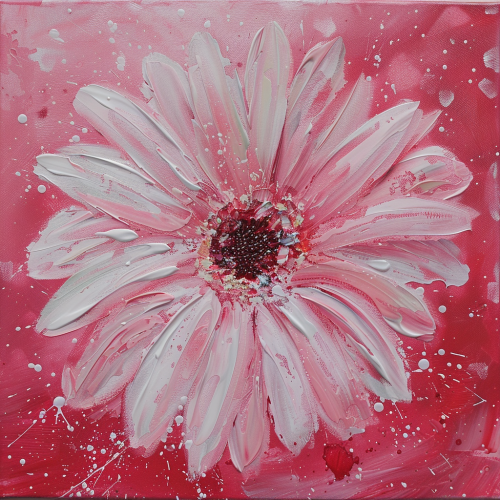 oil painting for feburary birth flower with pink red back ground and just a litttle splatter of white paint