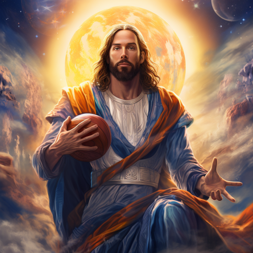 jesus christ as a full color NBA sports logo, Exciting. Dynamic. Extra detailed. Hyperrealistic.