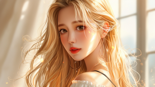 an underwater photograph of a beautiful woman with long flowing blond hair flowing languidly in the water. Shafts of sunlight slant in from above. --ar 1:1 --style raw --v 6.1