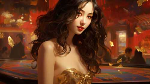 Gold, Casino, korean young women, Happy, Pretty, Cutie --v 5.2 --ar 16:9