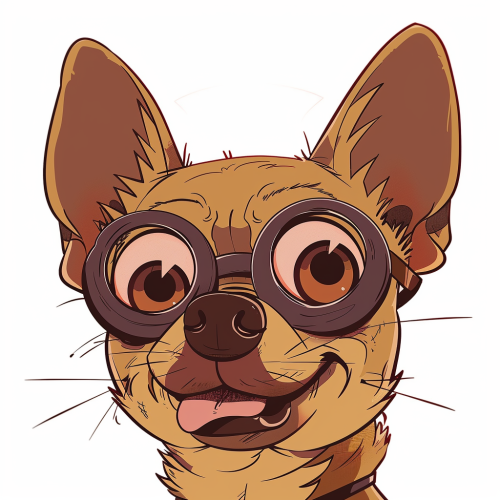 90'S animation style. chihuahua, wearing a monocle , cheeky, peeping into screen, full body, chaotic, manic, white background --style raw --no 3d