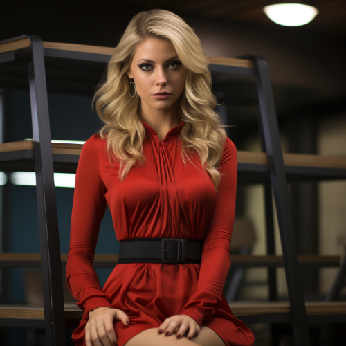 An Israeli-English woman with green eyes sits on an old sofa, modeling for a painter. Lacking confidence in her first session, she looks at the painter, wearing a short white skirt, 8k, --ar 16:9 --v 6.0