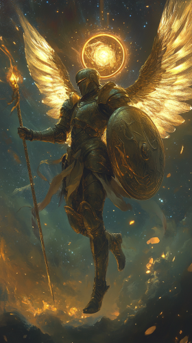 Dwarf paladin in shining armor casting a spell. The mood is eerie and etherial. Dark Fantasy setting. Watercolor art style with soft washes of color and fluid details. The watercolor background is a medieval city with partial white space. --ar 3:7