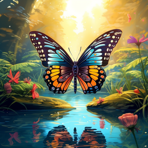 illustration, vector style, butterfly from profile flying, dominant blue, simple design, soft colors