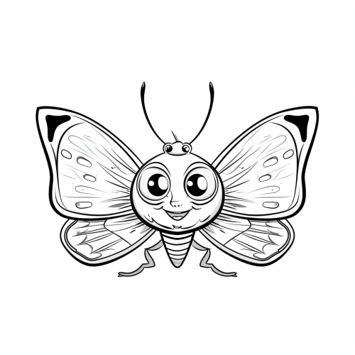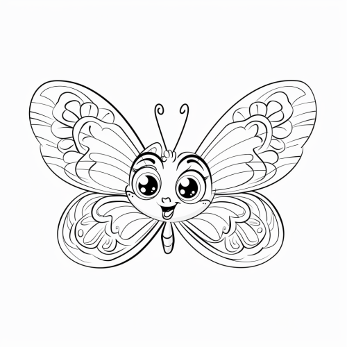 basic white cartoon cute butterfly head thorax abdomen and antenna , cartoon for kids , coloring pages for kids , kawaii, contour, white background