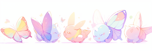 very cute kawaii buterflies playing with a white background --niji --ar 3:1