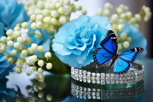 Beautiful blue butterfly and pink flowers