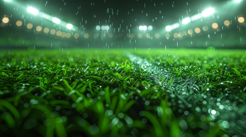 middle of football stadium, 50mm camera angle, black shiny elements, green hud like style --ar 16:9 --v 6.0 --s 750