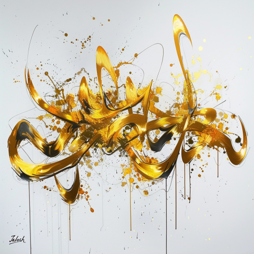 Genera exactamente la palabra "Jaloosh", con colores dorados y blancos sobre fondo blanco