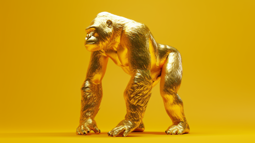 3D simple Gorilla Statue standing pose in gold on studio Gradient Background --ar 16:9 --v 6.0