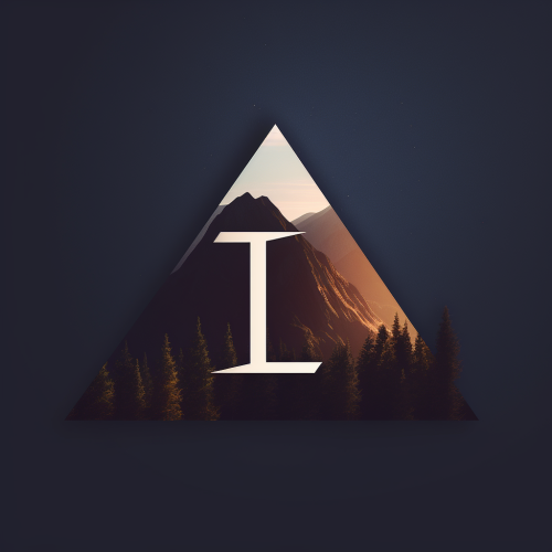 brand simplified logo with a mountain and light cascading out behind, with the letter T and L as a focal point with symmetry, the TL are nested within the sillouette of a house