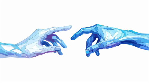 Illustration vectorielle simple de deux mains se serrant, symbolisant un partenariat à long terme, le tout sur un fond blanc épuré, couleurs dominantes bleu foncé #2f455c et bleu clair #61caf9, style vectoriel minimaliste et élégant --ar 16:9 --v 6.0
