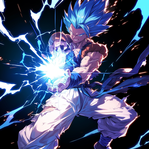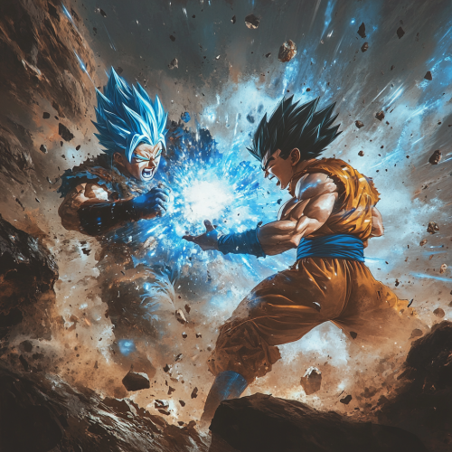 Blue-Haired Super Saiyan in Intense Dragonball Battle
