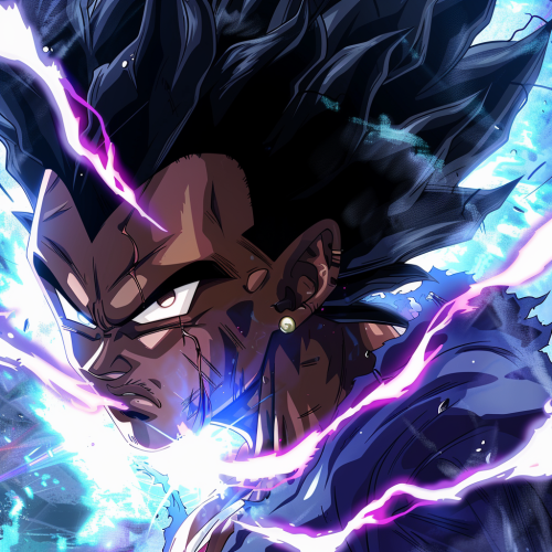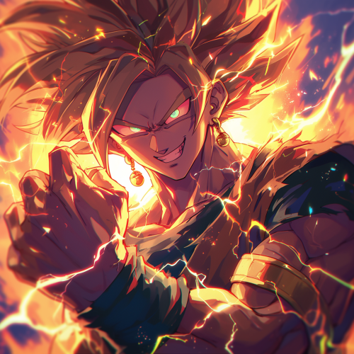 male super saiyan, cocky grin on his face, surrounded by sparks of lightning --niji 6
