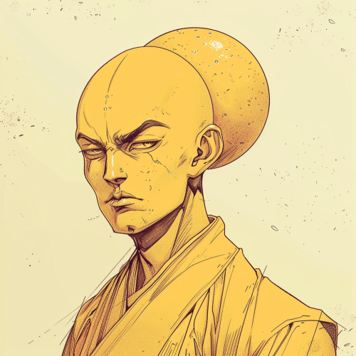 a character drawn like dragonball z, the character is bald and his head looks like a round lemon